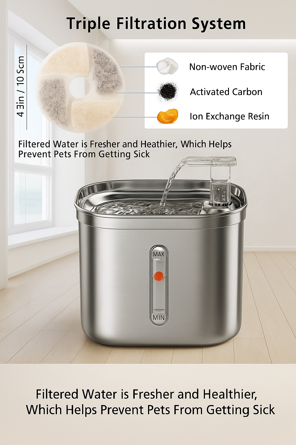 The Aquess Stainless Steel Fountain is the ultimate solution for keeping your cat healthy and hydrated: